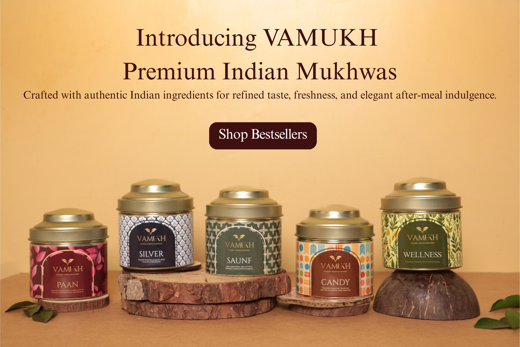At VAMUKH, we blend the essence of India's rich heritage with the finest ingredients to create a premium mukhwas experience. Each bite transports you to the vibrant streets of India, where traditional paan shops symbolize more than just flavor—they are the heart of community and culture. Our meticulously crafted mukhwas not only delights the senses but also offers time-honored health benefits. Infused with natural herbs and spices, VAMUKH aids digestion and refreshes the palate, staying true to the age-old practice cherished by generations. Indulge in the authenticity and elegance of VAMUKH, where every mouthful tells a story of tradition and wellness.